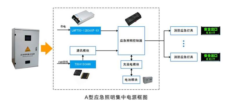 以智能应急疏散系统里常见的A型应急照明集中电源为例,它是一种安装在建筑物内,为应急照明疏散指示系统中的消防应急指示灯和消防应急照明灯提供电源的设备。当建筑物发生火灾、事故或其他紧急情况时,可以为消防标志灯、照明灯提供应急供电,保证消防应急照明和疏散指示灯正常工作。