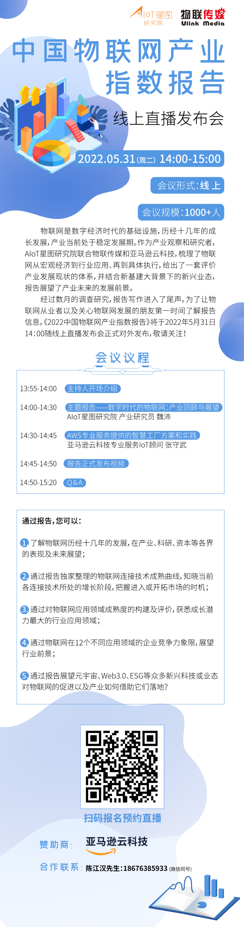 目前报告赞助正在启动,本报告是国内首次涵盖领域最全面的物联网产业指数报告,极具传播价值,欢迎更多的赞助商洽谈合作。