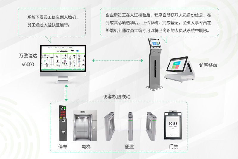 为助力园区复工复产和疫情防控“两手抓”,熵基科技携手合作伙伴轩熵豪控,为宿迁电子商务产业园区量身定制了一套基于万傲瑞达V6600的企业和人员数据联合管控系统,有效提高了园区物业工作的科学化、系统化管理,进一步强化了企业抗疫复工安全管理能力,助力园区提升在疫情之下的盈利能力。