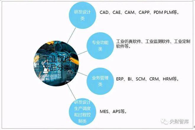 综合行业通用分类方法,我们把工业软件分为5大类:研发设计类,经营管理类,生产制造类,运维服务类,创新应用类。