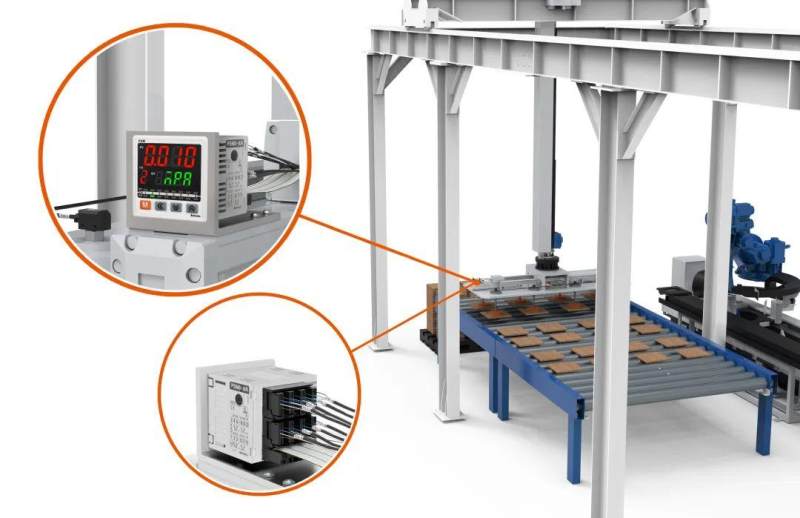 ▣PSM系列多通道压力传感器指示器,带有PSS系列压力传感器,用于检测瓷砖制造工程中真空夹具的压力变化。