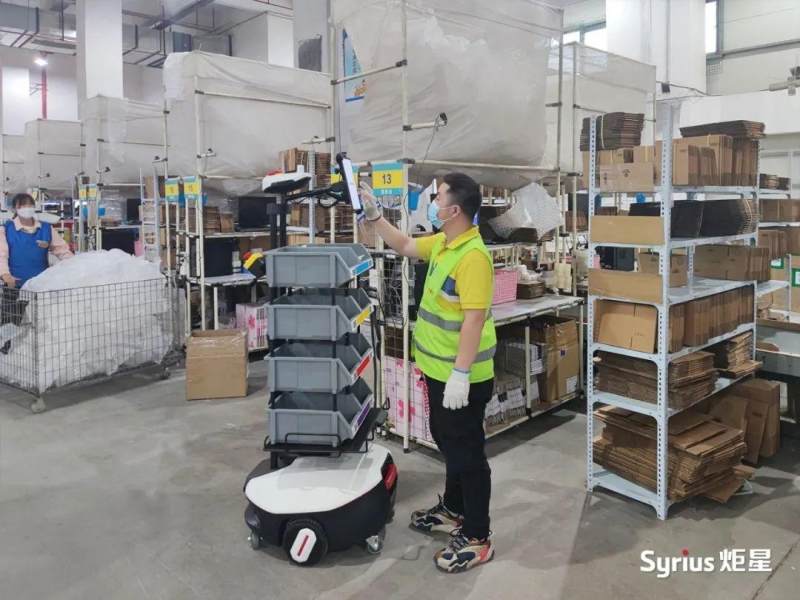 Syrius炬星在平均提升履约效率约2-3倍的同时,重点解决了三大难题:拣选的准确率、大促频繁以及更换货主带来的系列问题。AMR 物流机器人采用订单到人、分区拣选的模式,通过扫码枪、RFID、承重等方式,能过在拣货过程中即刻复核,准确率达到99.99%。