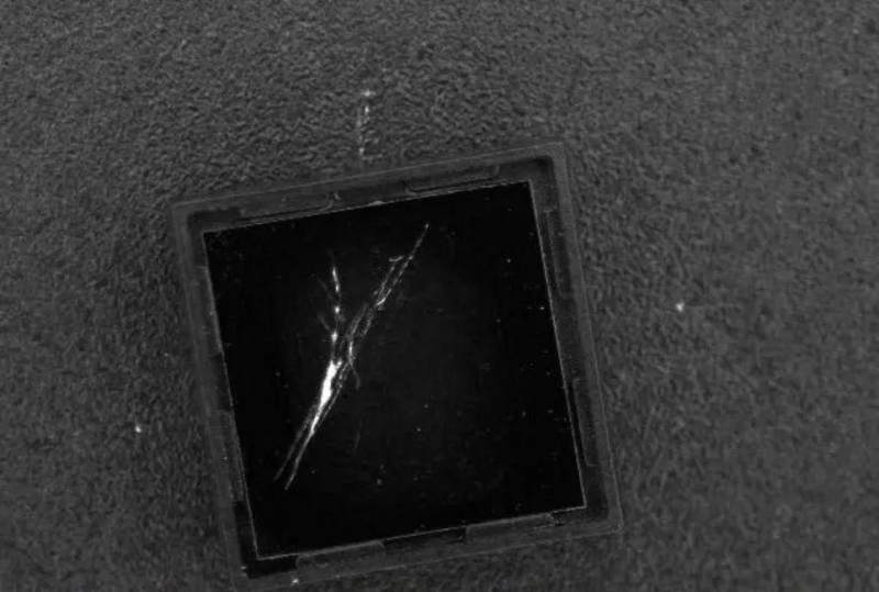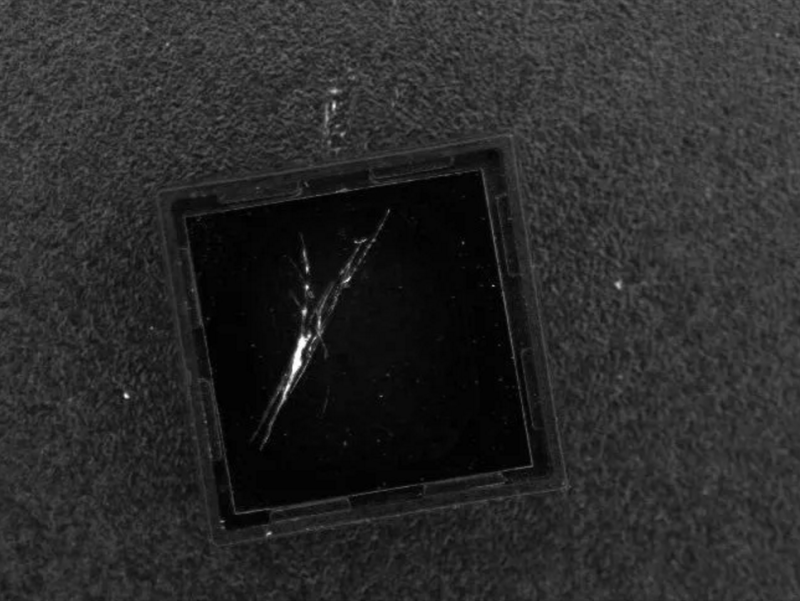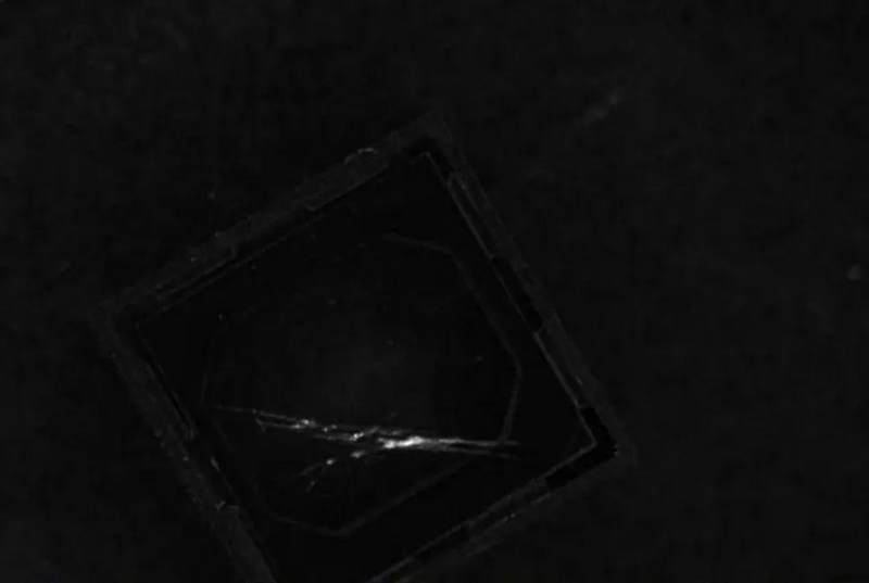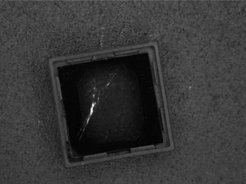 从上面的两组图片可以看出,如果想检测模组的镜片划伤,在合适的高度用90°环形光打光,能得到一张高质量的易于处理的图片。