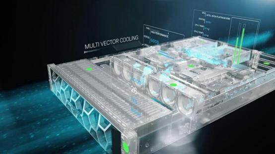 戴尔新一代PowerEdge服务器导入了多向量冷却技术2.0(Multi Vector Cooling 2.0),简化了服务器内的气流路径,通过专属的管道型风扇,以及自动调适冷却功能,把气流引导到服务器温度最高的部位,借此改善能源使用效率。