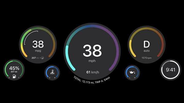 3、可获取车辆数据:无缝显示当前行驶车速、余量燃油、车内温度以及其他仪表信息;