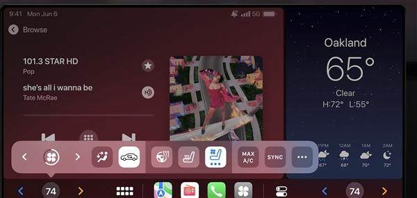 2、CarPlay车载直接控制收音机、空调等,调整车内环境等操作:用户无序退出当前CarPlay界面即可操作;