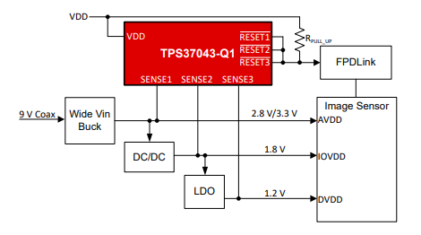 ●TPS3704xxxH-Q1:推挽式,高电平有效(RESET)