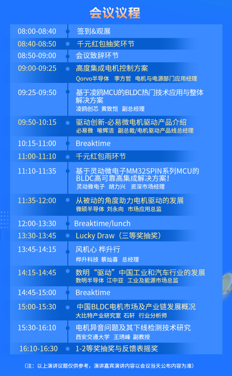 交流会演讲期间,各演讲嘉宾的演讲时间以及活动福利环节,请留意以下会议议程。
