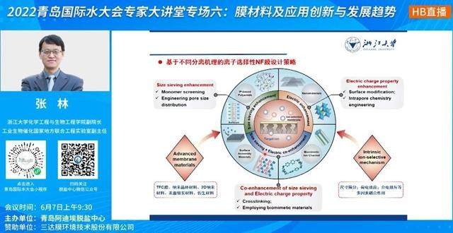 目前,无论是从卤水提锂、工业废水分盐资源化处理,还是从浓海水利用、饮用水钙镁选择性去除等各方面来看,单/多价离子盐分离需求的上涨都是可见的。“纳滤是最具潜力的单多价阳离子分离技术之一”,张林副院长对基于不同分离机理的离子选择性NF膜设计路径进行了分析,还介绍了新型膜材料。