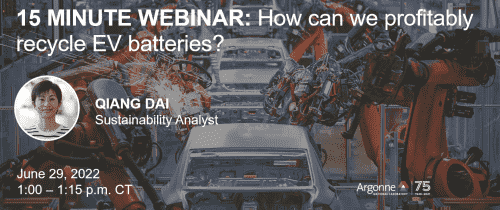 阿贡国家实验室将举办一场关于回收锂离子电池的挑战和可能的解决方案的公共网络研讨会。Argonne 的可持续发展分析师Qiang Dai将展示任何人如何使用 Argonne 的免费EverBatt工具来衡量回收锂离子电池的成本以及该过程如何影响环境。