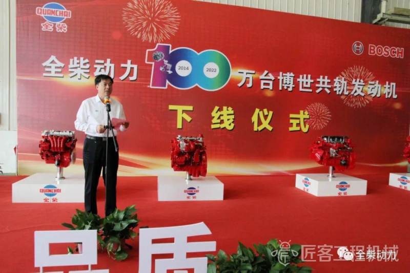 6月8日,全柴第100万台博世共轨发动机顺利下线,双方共同举行下线仪式。
