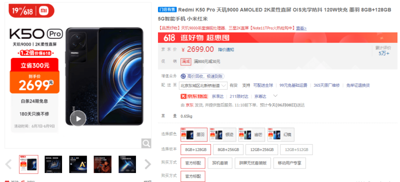 Redmi K50 Pro目前在京东开启多项优惠活动(图源网络)