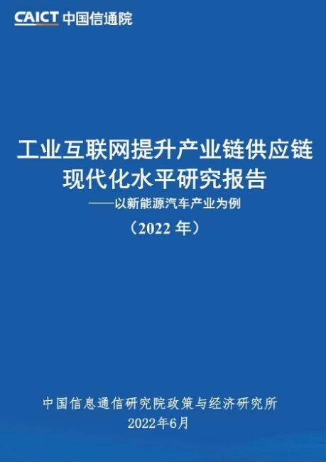 中国信息通信研究院(以下简称“中国信通院”)以近年来各方高度关注、产业链条较长、赋能方案可复制性较强的“新能源汽车产业”为研究对象控制工程网版权所有,对行业产业链供应链现代化水平研判思路、工业互联网赋能工具和路径等开展系统研究,并于2022年6月8日发布《工业互联网提升产业链供应链现代化水平研究报告(2022年)》,主要内容如下: