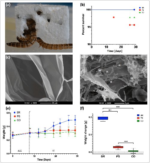 领导这项研究的Chris Rinke博士说:“我们发现,只喂食聚苯乙烯的超级蠕虫不仅存活下来,而且甚至体重还略有增加。这表明蠕虫可以从聚苯乙烯中获取能量,很可能是在它们的肠道微生物的帮助下。”