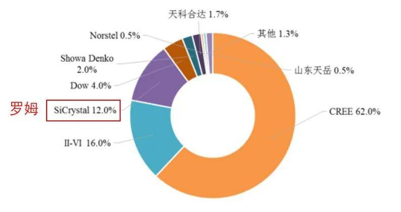 以SIC市场为例,美国在SiC 领域全球独大,美国Wolfspeed、Ⅱ-Ⅵ、Transphorm、道康宁等行业巨头占据了全球70%以上的市场份额;