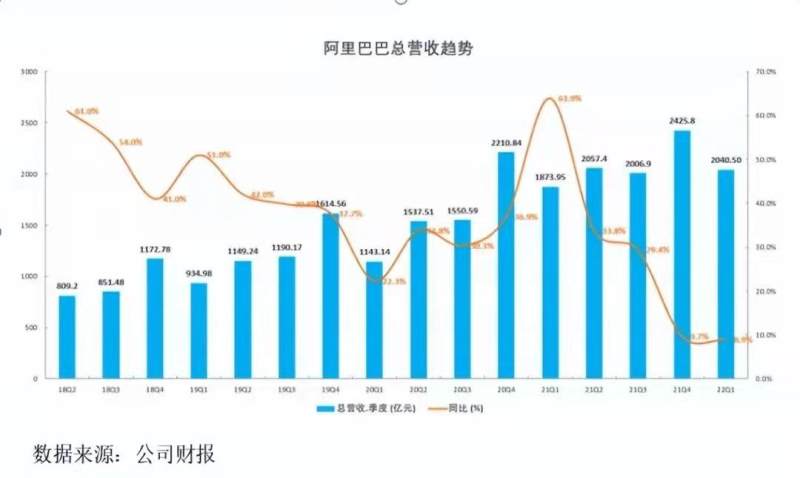 最直观的体现是营收,几乎所有互联网企业的营收增速都出现了肉眼可见的下滑。其中尤以头部企业阿里、腾讯的营收降速最烈。