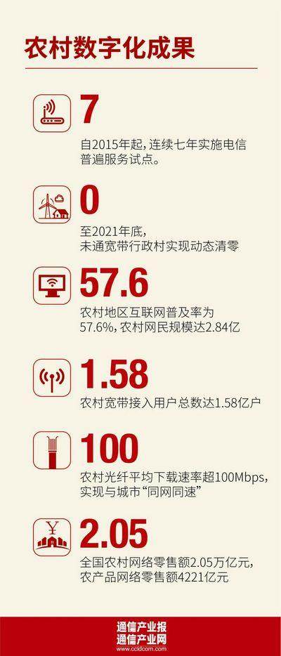 自2015年起,我国连续七年组织实施电信普遍服务试点。至2021年底,未通宽带行政村实现动态清零。