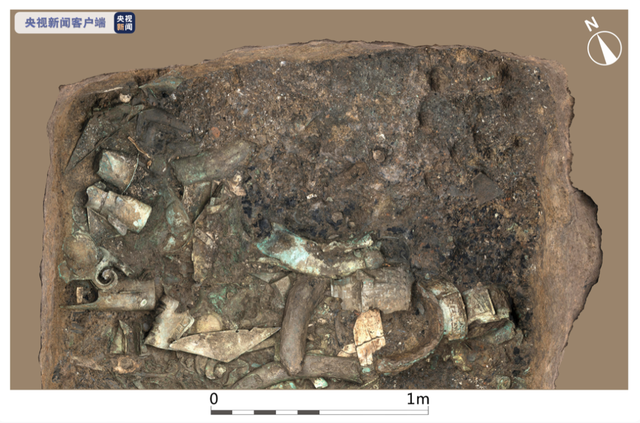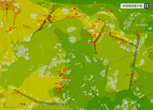 2020-2022年,祭祀区共发掘面积1834平方米,基本确认祭祀区大致呈西北-东南走向的长方形分布范围,与北侧紧邻的三星堆城墙平行,面积将近1.3万平方米。