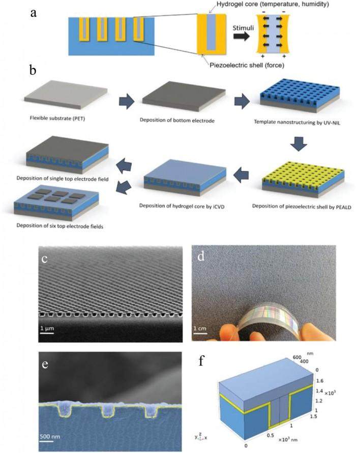 科克莱特解释道:“水凝胶可以吸收水分,在湿度和温度发生变化时膨胀。在此过程中,水凝胶对压电氧化锌施加压力,压电氧化锌通过电信号响应此压力和所有其他机械应力。这种超薄材料能以极高的空间分辨率同时对力、水分和温度作出反应,并发出相应的电子信号,这种拥有多传感器特性的材料是智能人工材料技术领域的‘圣杯’。”