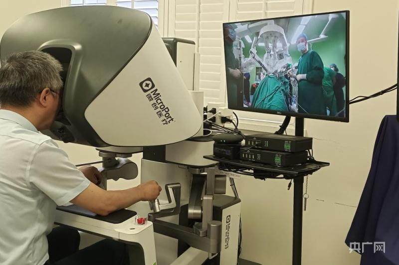 江苏省人民医院泌尿外科副主任李杰正在操纵克州的“图迈”机器人完成手术(央广网发 李雪梅 摄)