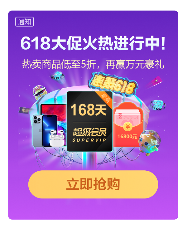 本次活动时间为2022年6月15日至2022年6月30日,进入活动页的用户可随机获得618限时特惠,最低可享4折开通会员,每位用户限购4次;同时想要囤会员的用户,迅雷会员本次也推出了大额神券,每位用户最多可享6张。