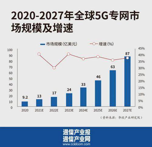 5G专网商业变现的本质是输出基于5G网络的数字技术能力解决垂直行业的痛点问题,从而让5G专网客户认可5G专网的价值并愿意为其投资建设。据相关数据统计,预计2020—2027年的复合增长率将达到37.8%,5G专网市场规模随垂直行业客户的需求提升高速增长。