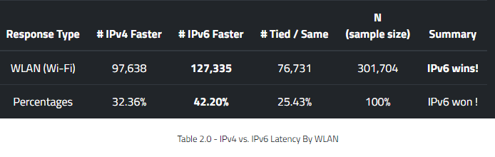 表 - 2:IPv4 与 IPv6 的 WLAN 延迟评估