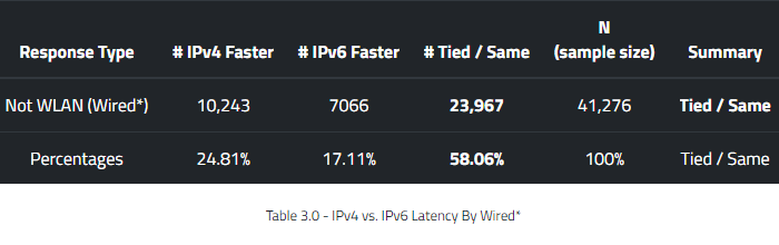 表 - 3:IPv4 与 IPv6 的有线延迟评估