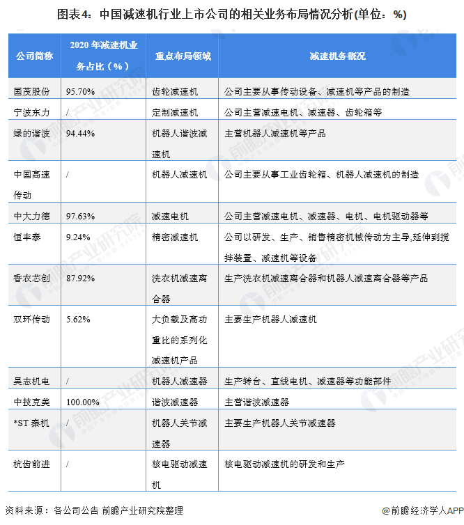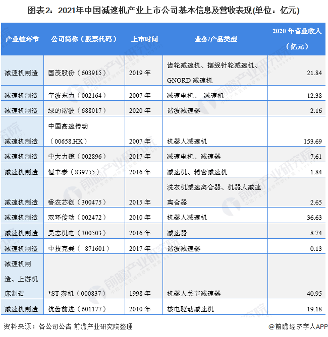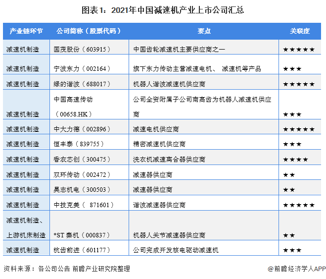 1、中国减速机行业上市公司汇总:所属的产业链环节基本为中游减速机制造环节