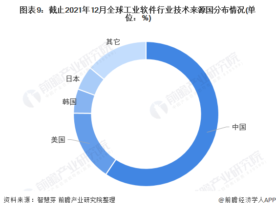 ——全球工业软件行业技术来源国分布:中国专利申请数量占比最高