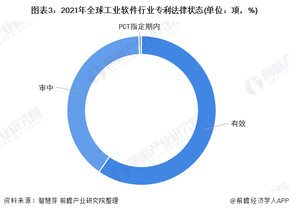 图表3:2021年全球工业软件行业专利法律状态(单位:项,%)
