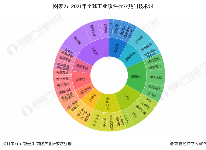 全球工业软件前十大热门技术词包括CAD、人工智能、自动化、施工现场、分析方法、检测装置、大数据、吸收性、控制系统、建筑施工。进一步细分来看,工业软件技术热门词包括ERP、嵌入式软件、云平台、控制装置等。具体情况如下: