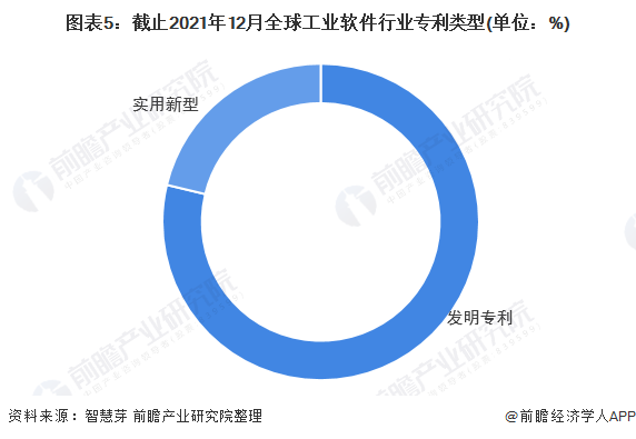 图表5:截止2021年12月全球工业软件行业专利类型(单位:%)