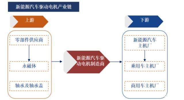 新能源汽车用永磁同步电机产业链上游为钢材、铜材及稀土永磁材料等原材料。