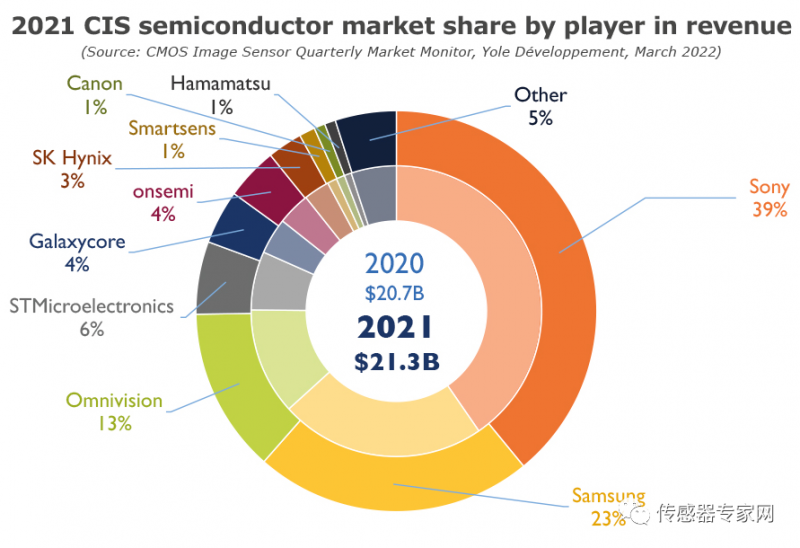▲Yole全球CMOS图像传感器厂商市场份额
