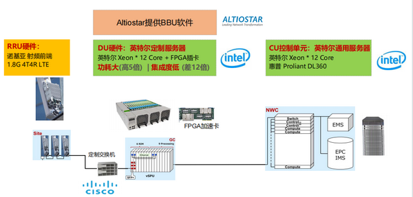 与此同时,首先,乐天宣称Open RAN开放生态,但核心部件被美系厂商独家锁定。BBU硬件全部基于“Intel X86服务器+FPGA加速卡”,独家锁定,没有第二选择。其次, BBU软件由AltioStar独家提供,也没有第二选择。最后,RRU硬件起初是使用诺基亚产品,后来新增了韩国KMW等厂商。