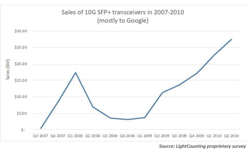 光器件供应商整体销售额同比增长10%,但环比下降7%。II-VI、光迅科技、博创科技、新易盛、海信宽带、华工正源、旭创科技和新飞通的销售额同比增长了两位数。