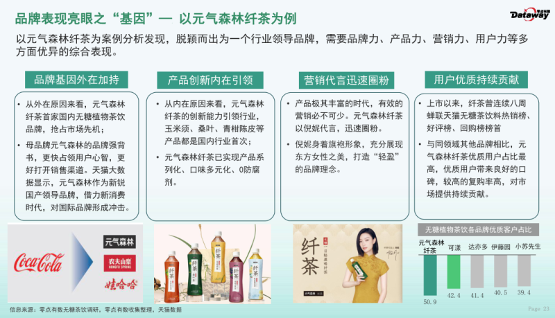 《报告》显示,预计到2028年, 无糖植物茶饮由于更新鲜、更养生、无负担,在无糖茶饮市场份额占比超过20%,纤茶因品牌基因、产品创新、营销代言、用户优质等因素,市场份额将超过40%。