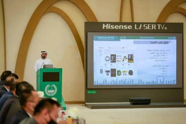 海信激光电视不仅受到高端消费人群的青睐,更受到全球性活动的“偏爱”。近日,迪拜警察总局就采购了多台海信激光电视用于公务接待等活动。6月14日,驻迪拜总领馆与迪拜警察总局在警察俱乐部举办2022年警民座谈会暨安全知识与便民服务讲座。李旭航总领事出席并致辞,迪拜警察总局刑侦局局长贾马尔准将、副局长穆罕默德准将、孙旭东副总领事、驻阿联酋使馆警务参赞等出席活动。海信激光电视现场提供技术支持。
