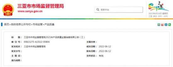 2021年,海南省三亚市市场监督管理局对童车、静态玩具、橡皮泥/彩泥/水晶泥、儿童及婴幼儿服装、中小学生作业本、小家电等6种商品进行了产品质量监督抽查。其中检出标称台州市荣鑫电子机械有限公司生产的1批次新款690落地扇不合格。具体信息如下: