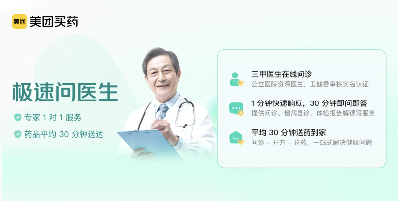 各类情况的叠加,让线上健康服务成为子女照顾父母身体健康的“刚需”。美团买药日前推出在线问医生服务,帮助患者足不出户享受包括三甲公立医院资深医生在内的病情问诊、慢病复诊、体检报告解读,30分钟送药到家。通过线上服务为老人群体提供便捷,同时也帮助异地子女远程照顾年迈的父母,解除部分后顾之忧。