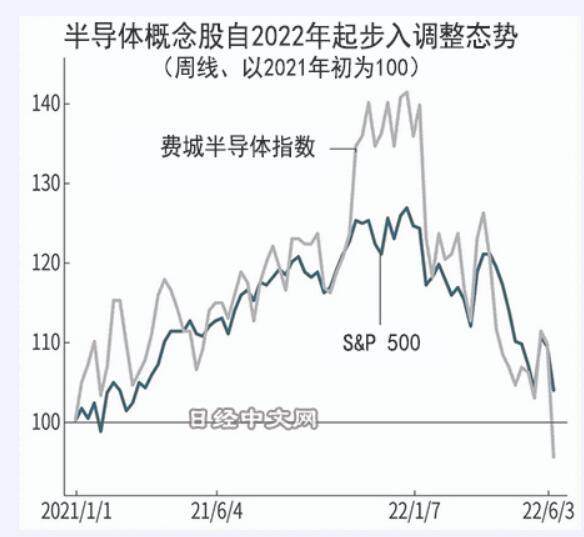 但如果库存增加和最终产品需求疲软超出预期,年底需求旺季之前的订单也可能下行。股票市场也在加强对周期拐点的警惕。由主要半导体相关股构成的费城半导体指数自2022年初进入调整局面,目前的下跌尤为明显。