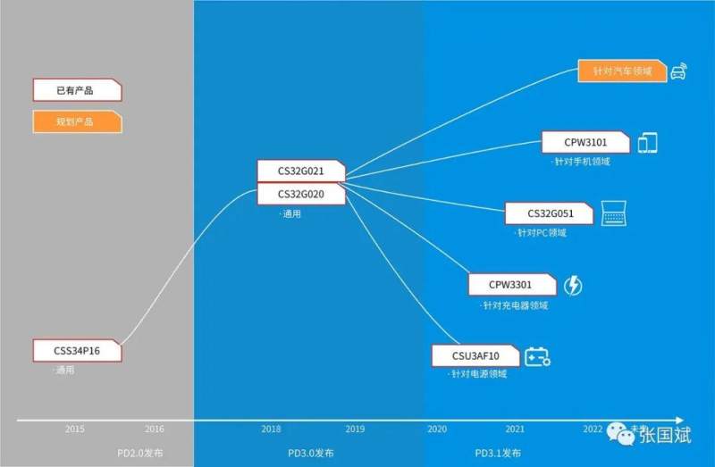 2021年5月,USB-IF协会发布了最新的USB PD3.1快充标准,引爆了整个会场,快充从手机蔓延到多个领域,而芯海的快充芯片犹如天女散花般从CS32G020演进到多个专用PD芯片,如针对电源的CSU3AF10,针对PC领域的CS32G051,芯海还将推出针对车规的快充芯片。
