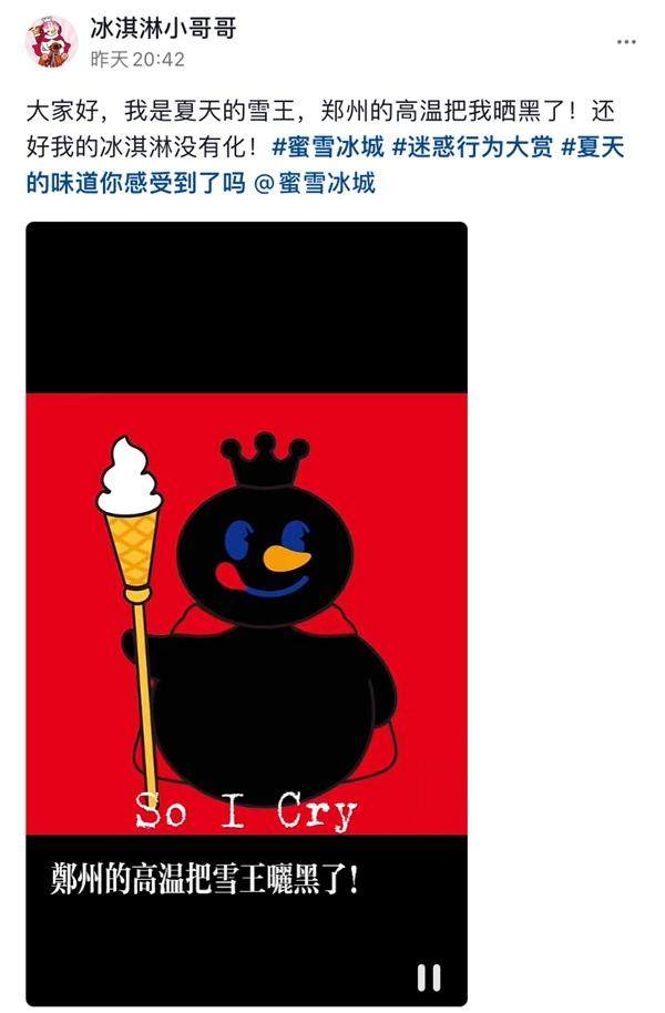 据了解,蜜雪冰城总部所在的河南郑州,近日连续被高温笼罩,最高甚至超过40℃。怪不得蜜雪冰城被“晒黑”了。