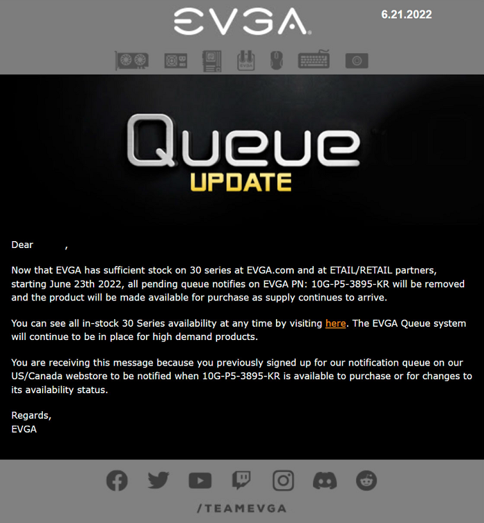但在引发了轩然大波之后,EVGA 在 24 小时内就重新启用了排队系统,并为之前的大意决策而向广大消费者致歉。