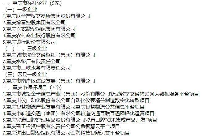 据悉,重庆市聚焦基础管理、管理创新、体系建设和文化培育等重点内容,遴选具有管理基础扎实、体系完备、能力突出、成效显著等特点的标杆企业,作为国有企业加强管理的先进典型。聚焦管理方法、管理流程、管理架构、管理机制等工作重点,在战略管理、运营管理、财务管理等专业管理领域,遴选一批高效协同、效益突出的标杆项目。