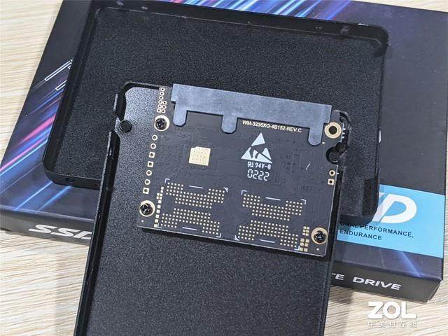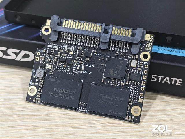 拆开之后可以看到电路板只占了SSD内部的很小一部分空间,而且背对金手指的这一面是没有任何颗粒和元件的,在另一面布局了所有的元件。