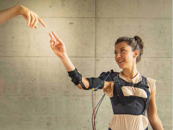 苏黎世联邦理工学院的团队开发了Myoshirt,特别是为了增强行动受限或行动能力下降的人的力量和耐力,并进行了一个小型测试,将该装置放在10个没有任何身体损伤的人身上,一个有肌肉萎缩症,一个有脊髓损伤。