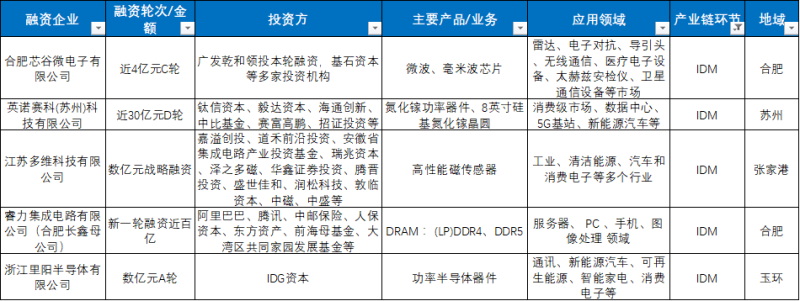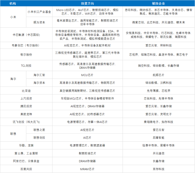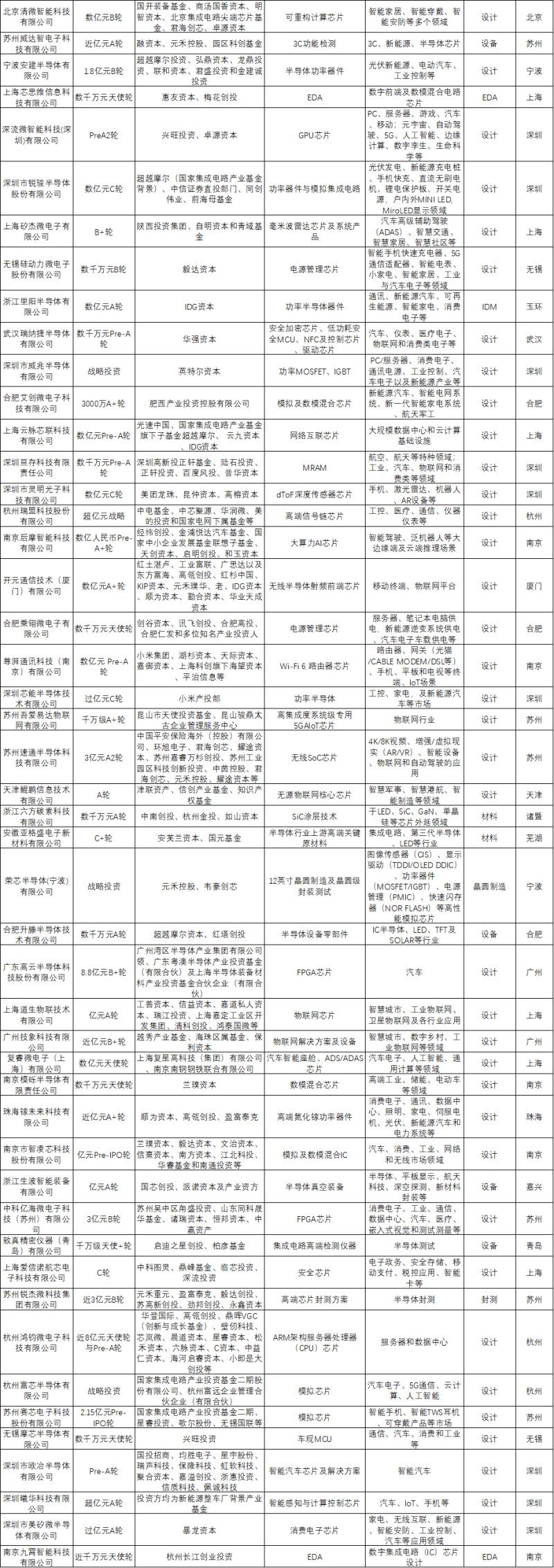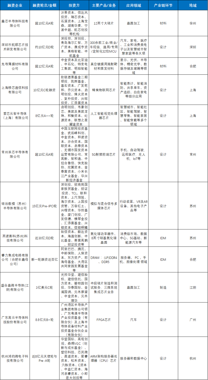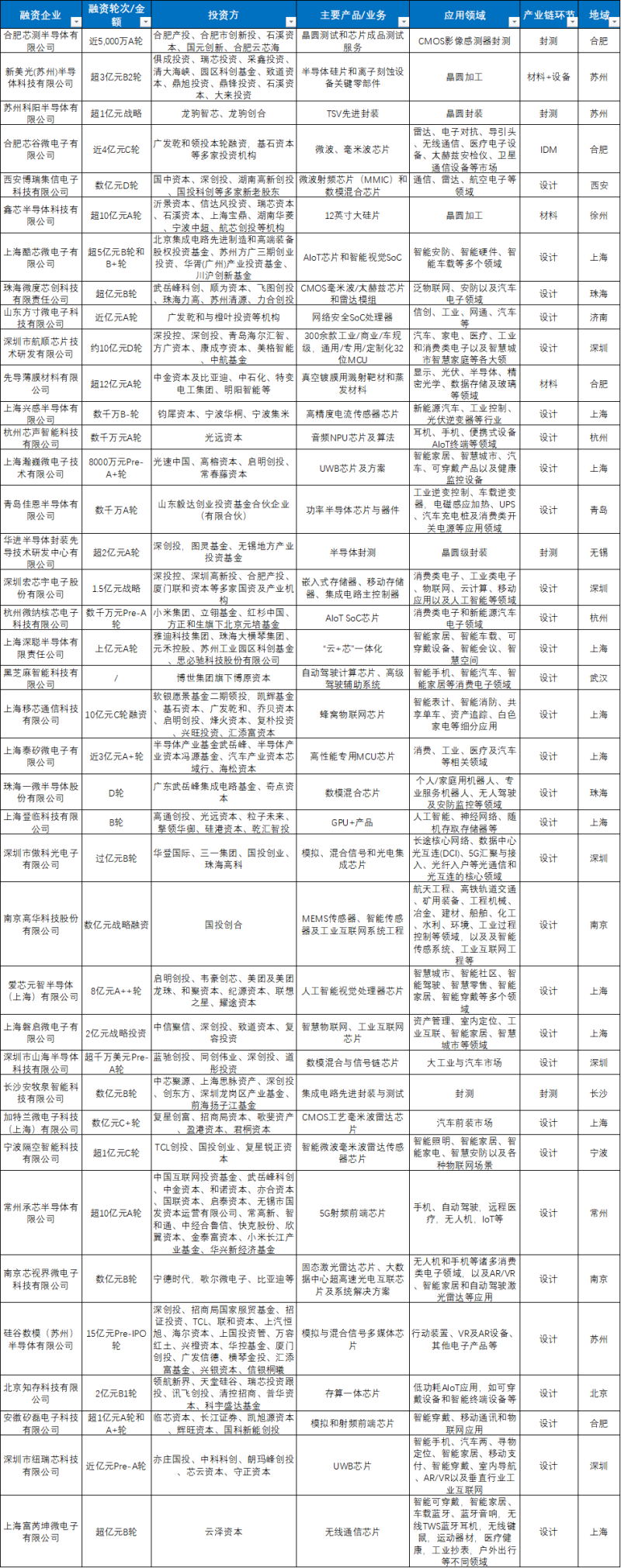 各路资本在半导体一级市场的布局一览(据不完全统计)
