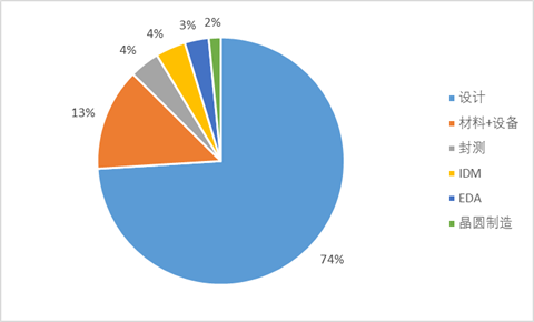 今年上半年,尽管大部分国内半导体融资企业仍然是设计企业,这一比例高达74%,然而,我们也看到了国内半导体融资向上游挺进的明显趋势,材料和设备企业的比例达到了13%。